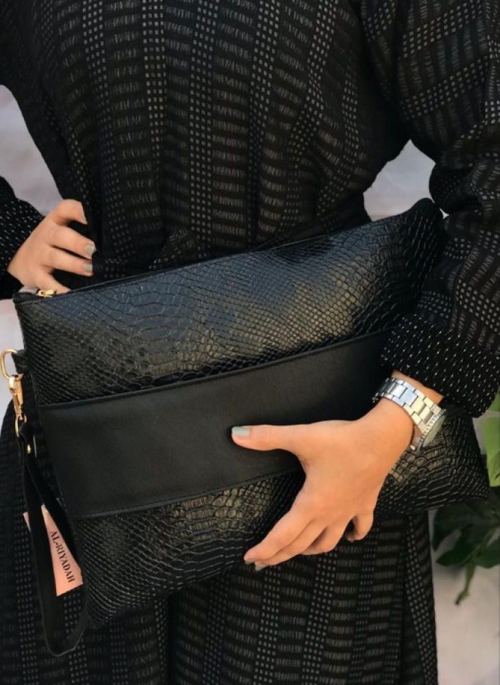 - حقيبة جلد تتميز بتصميم أنيق وفاخر بنقشة مستوحاة من جلد البايثون لإطلالة عصرية وجذابة