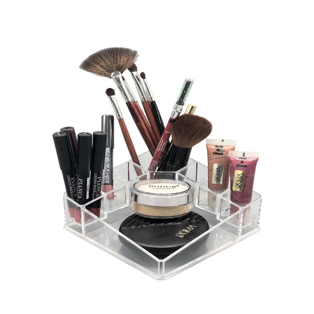 منظم مستحضرات تجميل صغير مربع الشكل من 8 أقسام