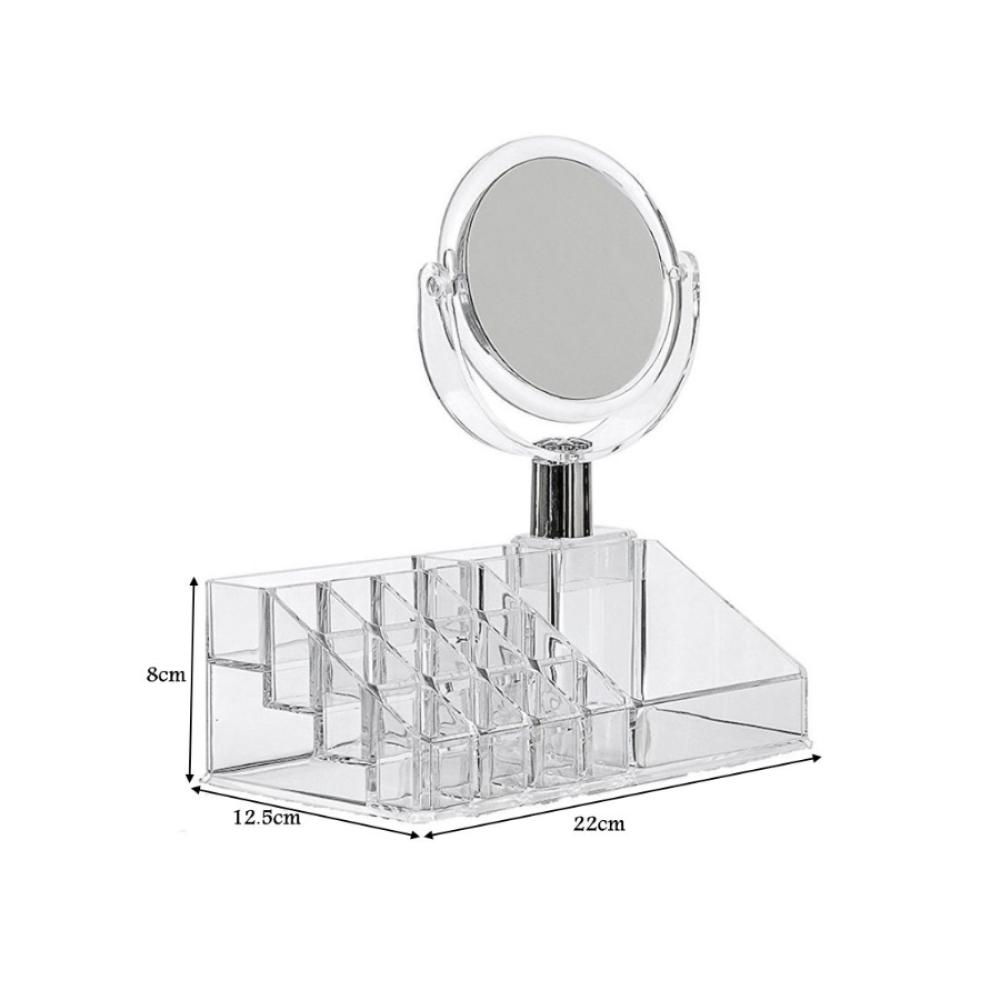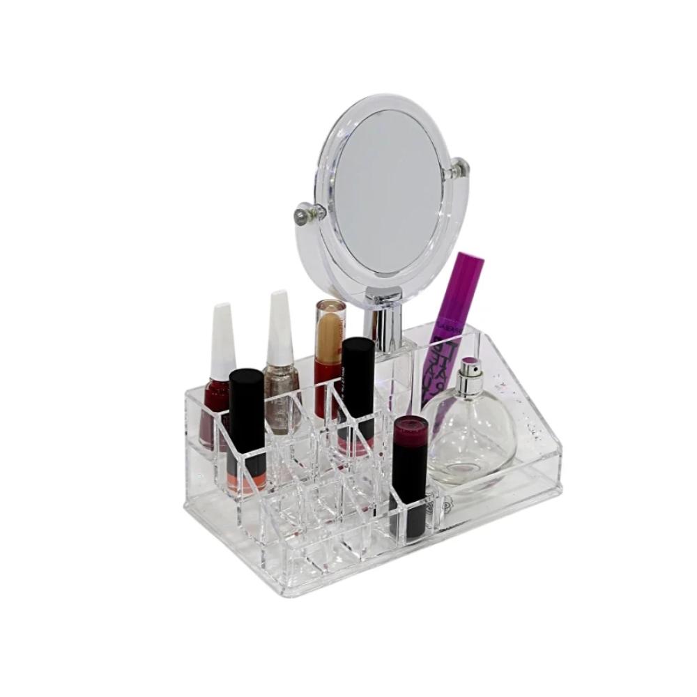 - منظم اكريلك يحتوي على 12 خانة مثالية لأحمر الشفاه وطلاء الأظافر أو أدوات التجميل الصغيرة بالإضافة إلى 4 خانات بأحجام مختلفة لتخزين المكياج والمجوهرات