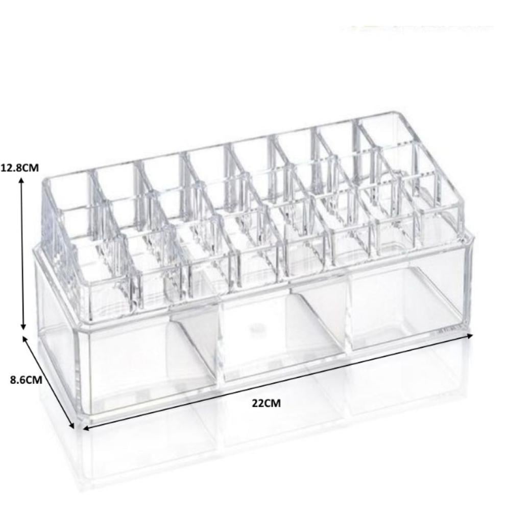 - منظم المكياج الشفاف يساعد على تقليل الفوضى والحفاظ على ترتيب الأدوات مما يجعل تجربة الاستخدام أكثر راحة وسلاسة