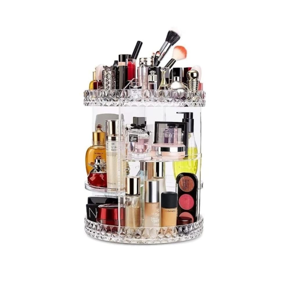 منظم مستحضرات التجميل القابل للدوران بزاوية 360 درجة يمكنك من الوصول إلى جميع مستحضراتك بسهولة وبدون عناء ومصنوع من أكريليك فاخر بنمط الماس، يوفر سعة تخزين كبيرة لتجمع كافة أدوات التجميل الخاصة بك بطريقة أنيقة للمزيد من منتجاتنا زورو متجر sb cute